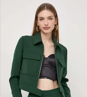 Podobni izdelki ›Meritve modela: višina: 180cm (7'0"), doprsni kip: 83cm (32in), pas: 63cm (24in), boki: 92cm (36in); Izdelek na modelu je velikosti S/36.; 100% poliuretan, tkanina; Kombinirana koda: TWOAW22ET0572; Podloga je 100% poliester; Za velikost 36 je dolžina hrbta 72 cm; -